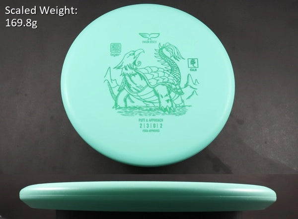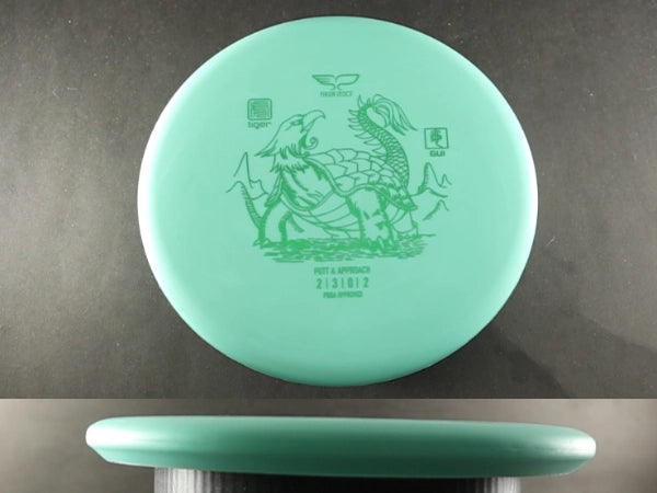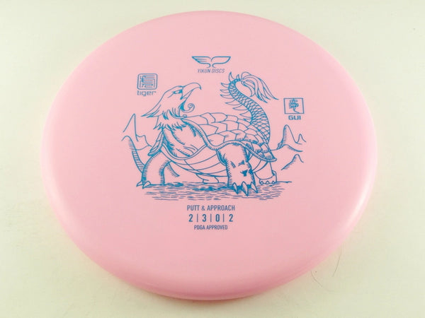 The Gui is a beadless overstable putter with a flat top, deep rim, and unique slip-resistant grip plates on the bottom flight plate. This is a very comfortable putt & approach disc that is very similar to the Discmania Tiger Warrior.