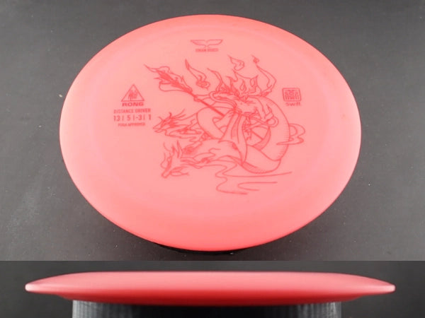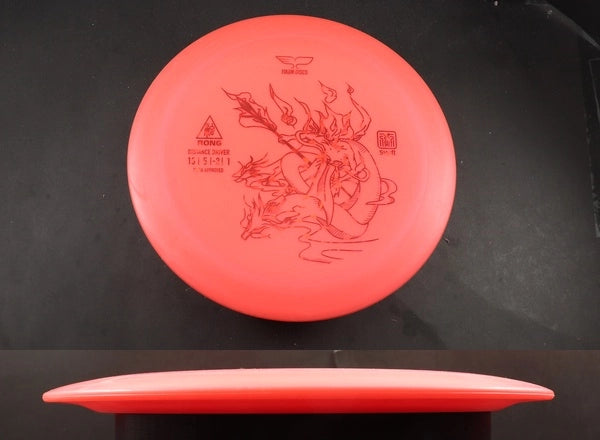 The Rong is a high-speed driver that exhibits understable flight patterns. This wide-rimmed driver provides a comfortable grip to help achieve long distances. Its flight will show a high speed turn with minimal fade, providing an excellent first high-speed distance driver, or a roller, or a utility turnover disc.