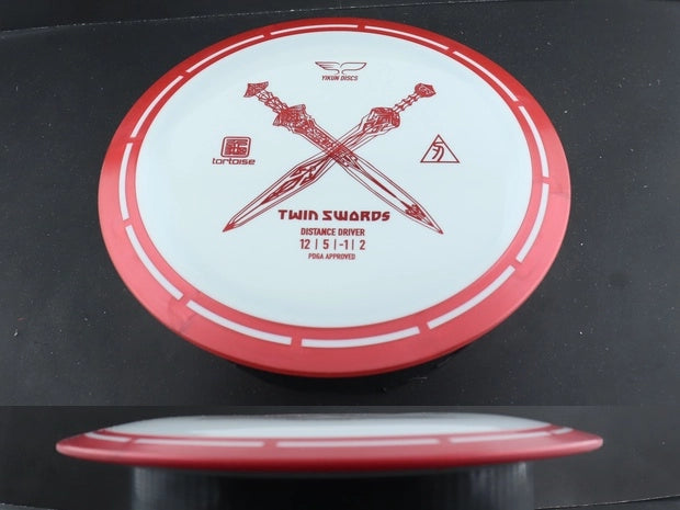 The Twin Swords is the first roll-out disc model from Yikun in their Tortoise Line plastic which is their overmold "Shell" configuration. The rim is attached to the flight plate through their own, unique method, giving the discs an amazing look. The Twin Swords is a distance driver with a Speed-12 rating and wide, yet comfortable rim width. The Twin Swords is a unique and exciting offering to the disc golf world, earning a spot in the bag for players at all levels.