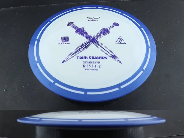 The Twin Swords is the first roll-out disc model from Yikun in their Tortoise Line plastic which is their overmold "Shell" configuration. The rim is attached to the flight plate through their own, unique method, giving the discs an amazing look. The Twin Swords is a distance driver with a Speed-12 rating and wide, yet comfortable rim width. The Twin Swords is a unique and exciting offering to the disc golf world, earning a spot in the bag for players at all levels.