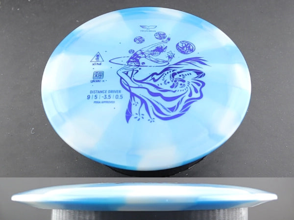 The Xi He is an understable 9-speed driver which is an excellent choice for newer players or for people with slower arm speeds that want to transition to a longer-distance driver. It has a lot of turn to keep the disc from fading early.